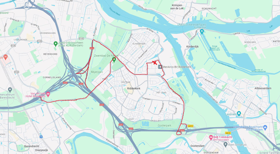 Vanaf de A15 Benelux kun je Ridderkerk volgen en bij de stoplichten rechts de Rotterdamseweg op.